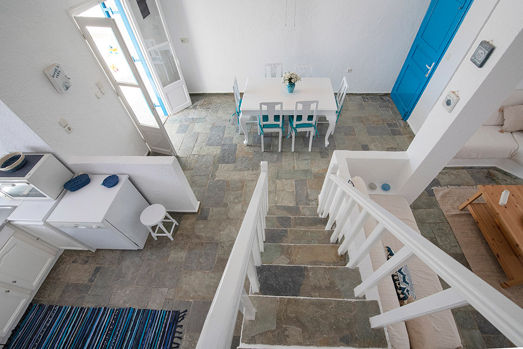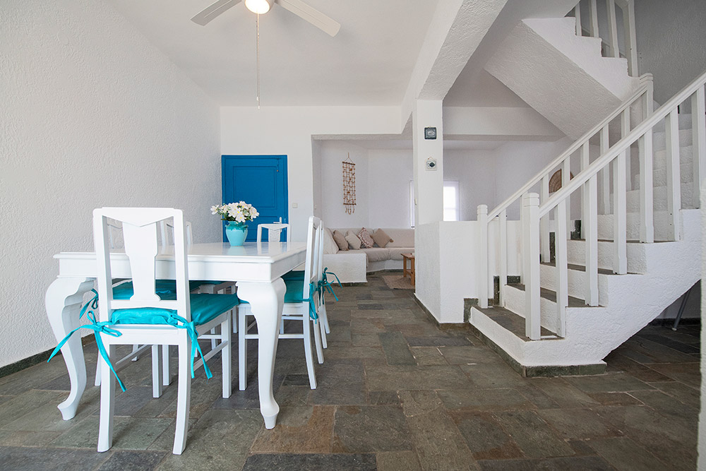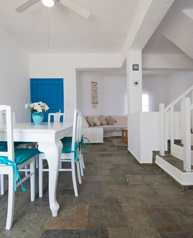 The White Pearl Villa is located in Armeos area in Kalymnos, on the mountain, with a beautiful view on Telendos island, offering the most beautiful sunsets. It is a two floor home with a dining room, living room, and a fully equipped kitchen on the ground floor.