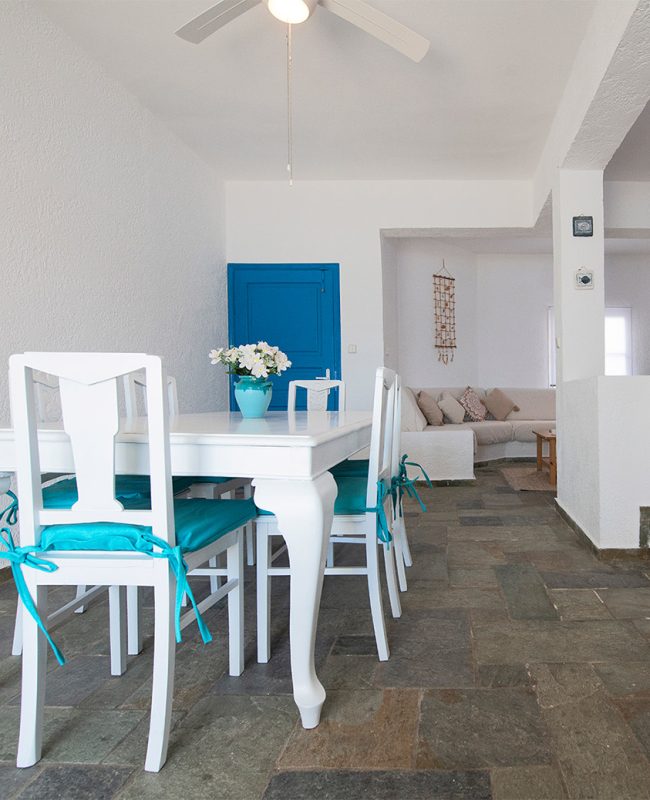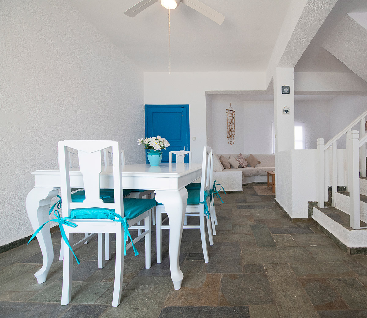 Μέσα στη βίλα, θα βρείτε ευρύχωρα και κομψά διακοσμημένα δωμάτια που προσφέρουν τον τέλειο συνδυασμό άνεσης και κομψότητας. Τα παράθυρα πλημμυρίζουν τους χώρους διαβίωσης με φυσικό φως ενώ προβάλλουν αδιάκοπη θέα στη θάλασσα. Βυθιστείτε σε άνετους καναπέδες στο ευάερο σαλόνι ή συγκεντρωθείτε γύρω από την τραπεζαρία για ένα γκουρμέ γεύμα που ετοιμάζεται στην πλήρως εξοπλισμένη κουζίνα.